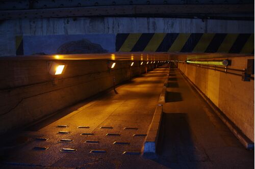 JR田町車両センター跡地の直下を、高さ制限1.5mの一方通行道が通り抜けています。 トンネルではなくガード下、名前を「高輪橋架道橋」といいます。高輪ゲートウェイ駅絡みの再開発によってこの道路は姿を消すらしく、興味があったので歩きに行きました。 カ…