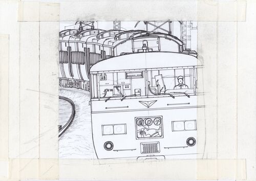 今度は2カ月近くもご無沙汰してしまいましたが、ペン入れ・線画の続きです。 編成番号はA8編成に決め、空白だったプレートに文字を描き入れました。ほか、砂利周りと背景の線画を追加しています(今まで盲点だったというか、単純に描き忘れていました)。 これ…